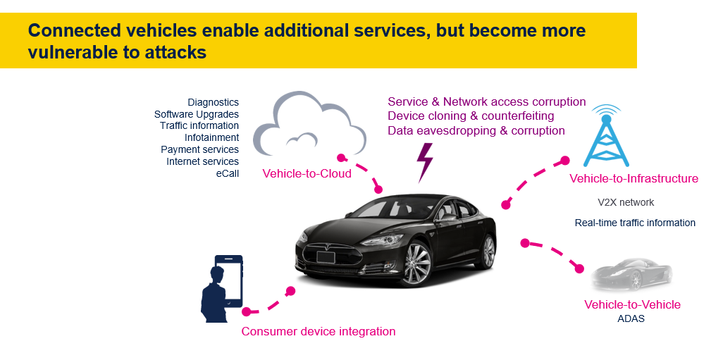 當(dāng)汽車進入智能互聯(lián)時代,黑客可以通過3G/4G/5G, 藍牙,Wi-Fi等射頻系統(tǒng)入侵篡改數(shù)據(jù),使汽車的信息安全甚至行車受到威脅。隨著域控制器,超級計算機,OTA,自動駕駛等汽車行業(yè)顛覆性技術(shù)的興起,大量數(shù)據(jù)交互成為整車新的生態(tài)。新的交互方式為外部暴露了更多潛在的攻擊窗口。據(jù)統(tǒng)計,現(xiàn)代汽車有90%以上的控制都是通過軟件來實現(xiàn)的,因此,控制不斷上升的安全風(fēng)險,降低可能帶來的潛在損失,是當(dāng)前汽車行業(yè)開始投入信息安全的主要原因。