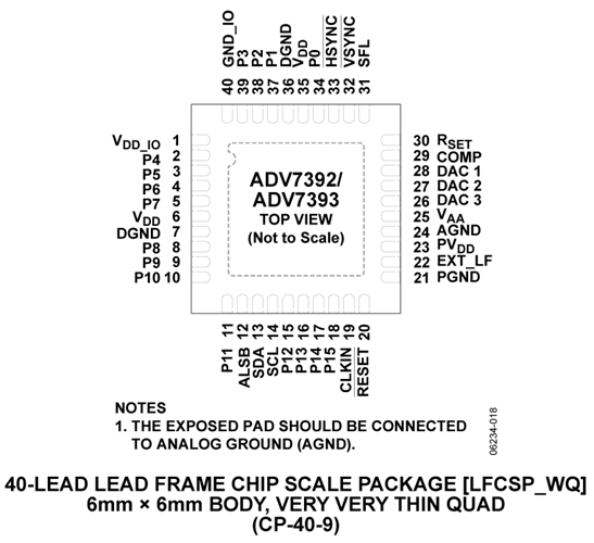 ADV7390/ADV7391配有一個8位視頻輸入端口,通過SDR接口支持標清視頻格式,通過DDR接口支持高清視頻格式。