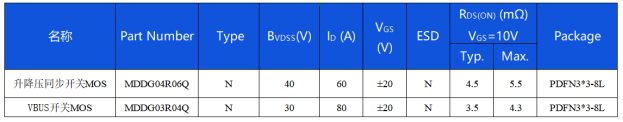 VBUS開關(guān)MOS:MDDG03R04Q,導(dǎo)通內(nèi)阻僅3.5mΩ